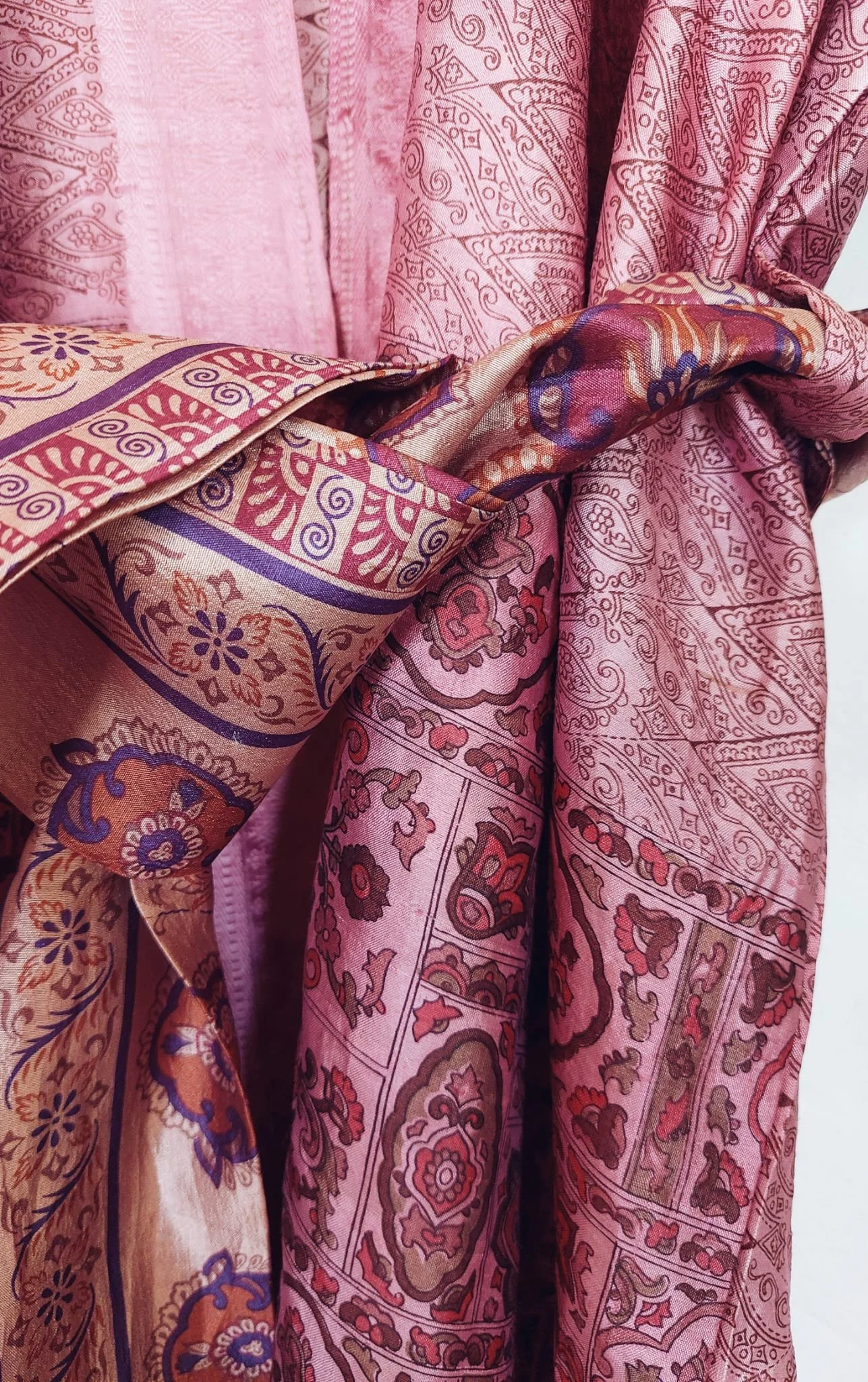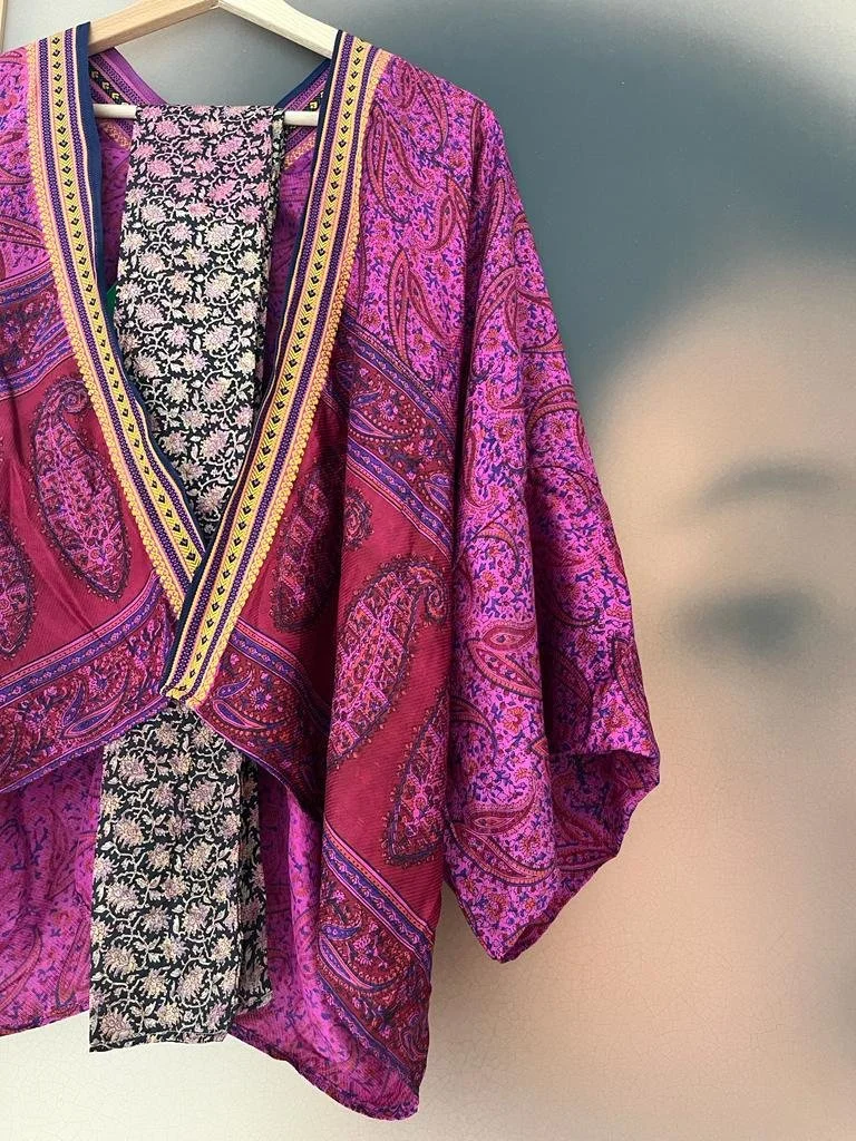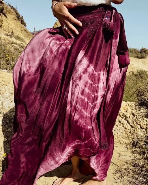 I work with carefully sourced pre-loved saris from India, each one personally hand-selected for its beauty, character, and exceptional quality, ensuring every piece reflects the distinctive luxury and craftsmanship that define my work.