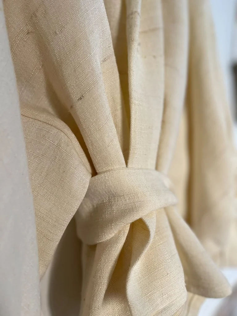 Alongside these treasured textiles, I use one of the world’s finest linens: premium 200g EU flax linen sourced from the Baltic region, renowned for its superior strength, purity, and timeless beauty. Together, these materials embody the conscious luxury, authenticity, and enduring values at the heart of Jeya Dai.